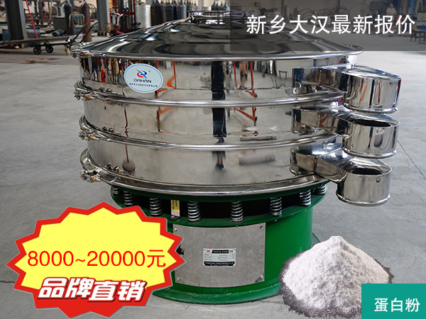 蛋白粉振動篩是將蛋白粉中所含的雜質、結塊、抱團等物質進行篩分,后保證半成品大豆蛋白粉原料的純凈度,那么蛋白粉振動篩多少錢一臺呢?下面小編將以新鄉(xiāng)大漢為例,為大家介紹一下關于蛋白粉振動篩的價格信息。