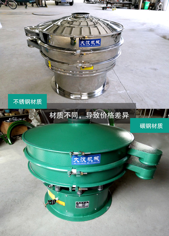 新鄉(xiāng)大漢蛋白粉振動篩材質分為兩種,一種為:與物料接觸部分采用304不銹鋼材質,機座部分為普通碳鋼材質;第二種為:整機采用304不銹鋼材質,有些用戶對每個生產細節(jié)都有嚴格標準的話需要采用第二種材質選擇,但是第二種會比一種價格成本要高。
