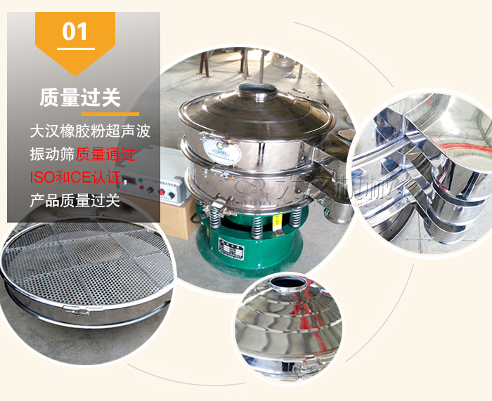 大漢橡膠粉超聲波振動篩質(zhì)量通過ISO和CE認證,產(chǎn)品質(zhì)量過關(guān),所以大漢廠家敢于在這里承諾大家:凡是由于質(zhì)量造成的一切問題,由大漢廠家承擔(dān)。