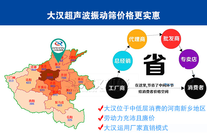 2、大漢超聲波震動(dòng)篩廠家直銷,沒(méi)有中間商賺差價(jià),單臺(tái)利潤(rùn)便較小,故而價(jià)格設(shè)定的比較低些,降低了用戶的投資成本;