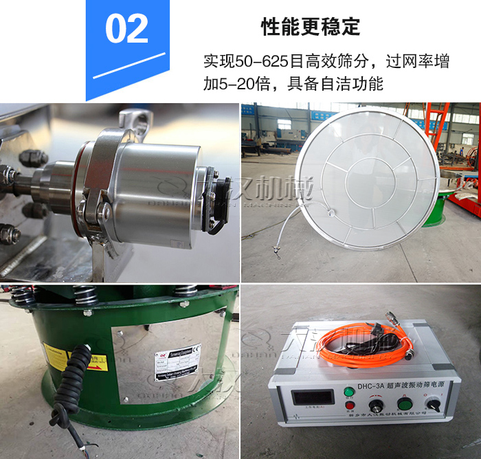 3、獨特的JHC超聲篩分系統(tǒng)應用,無需添加其他篩網(wǎng)清理裝置,具備自潔功能網(wǎng)孔不堵塞;