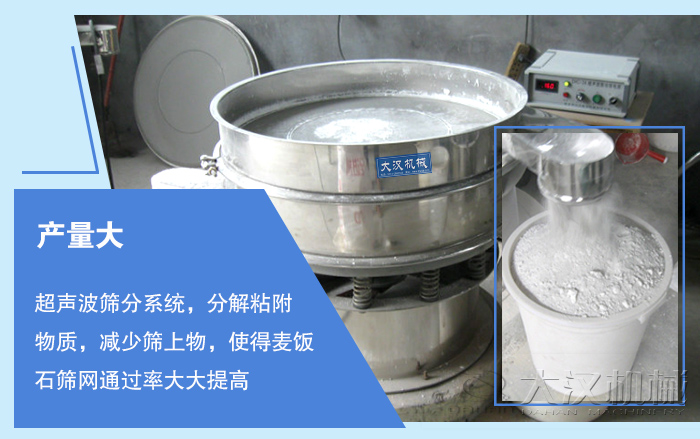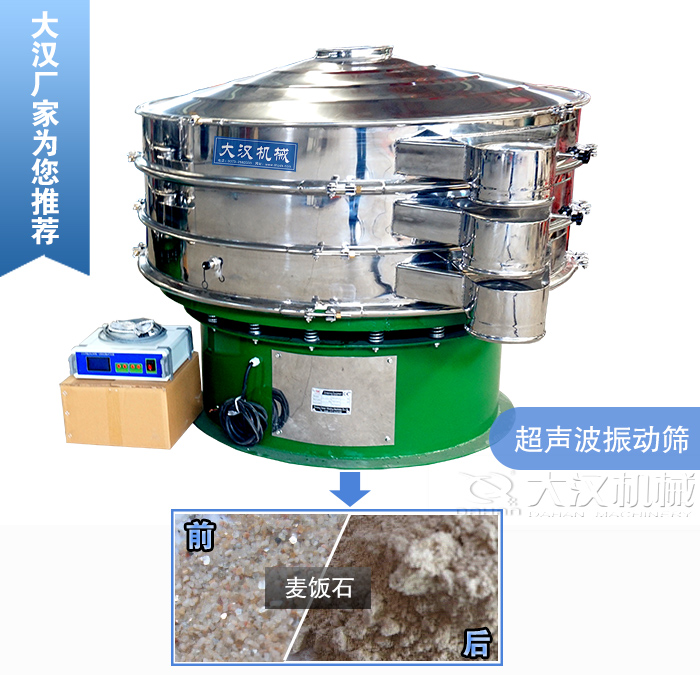 麥飯石粉是麥飯石的粉制品,是由麥飯石原礦經(jīng)過篩選,粉碎,分級加工而成的粉末,其篩選過程離不開振動篩設(shè)備,那么麥飯石粉末用什么振動篩好呢?大漢廠家為您推薦超聲波振動篩。主要原因如下: